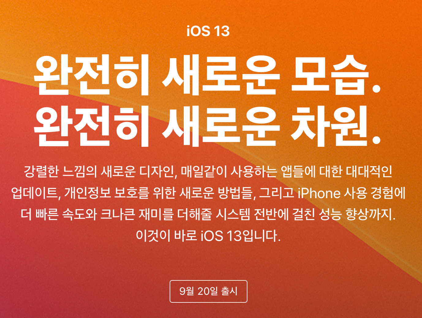 그리고 이 모든 것을 완성시킬 iOS13 도 출시를 눈앞에 두고 있답니다. 2019년 9월 20일에 출시를 앞두고 있는 엄청난 변화를 가져올 iOS13과 함께 iPhone11 & iPhone11 Pro는 그래도 많은 이들의 사랑을 받을 것으로 예상됩니다. 다음 주면 모두들 iOS13으로 업데이트를 하겠네요! 아 너무너무 기대가 됩니다!